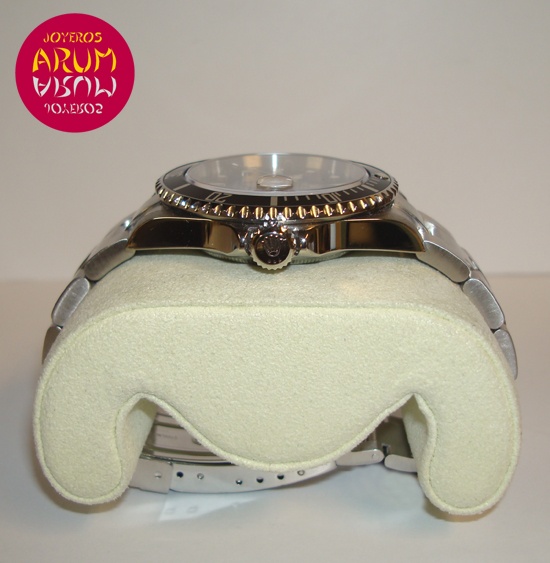 Description :steel, black dial, sapphire crystal, automatic movement, rotating bezel, center seconds, luminescent handles and dial, date at three, screw crown, diameter 40 mm, waterproof 300 meters, steel bracelet, steel folding clasp, year 1993.