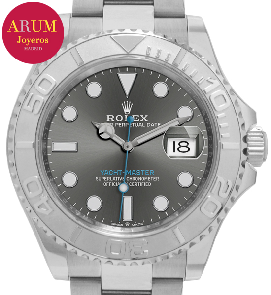Other specifications :platinum bezel, date, central seconds, luminous marks, safety ring with serial number, screw crown. Year 2021.