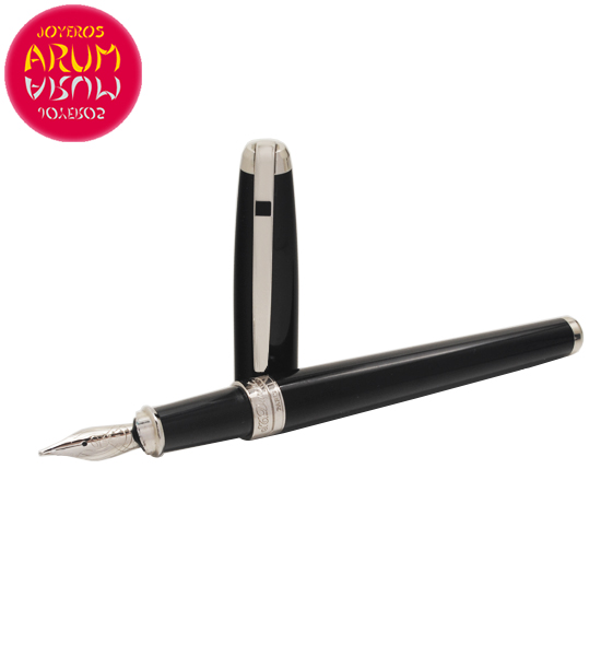 Description: Fountain pen S.T. Dupont, made of black lacquer and palladium. The The nib is in 18K gold. Measure is 14 cm.