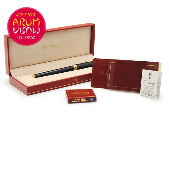 Description: S.T. Dupont fountain pen made in black laqued and gilt details, 18K gold nib. Measure are 135 mm.