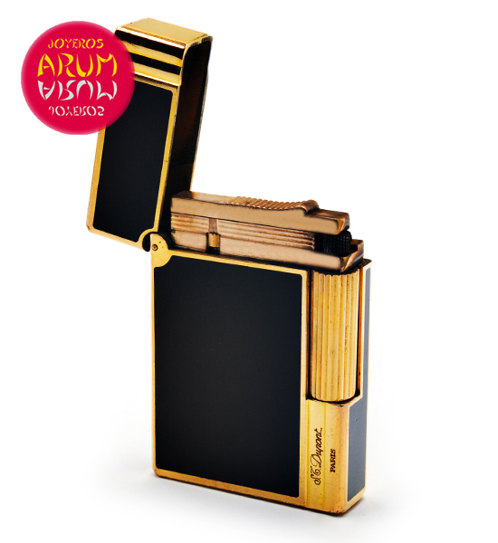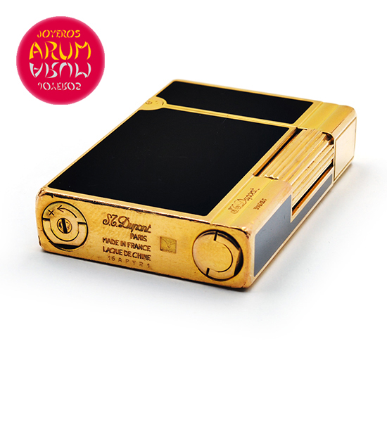 Product: S.T. Dupont LighterShop Reference: RAJ882Description: S.T. Dupont lighter made in metal plated gold, and black lacque, measure are 55 mm.Condition: Very good, with box.