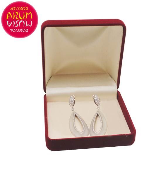 Description: Suarez earrings made in 18K white gold and white quartz with 160 diamonds (3 ct, H-VS1).