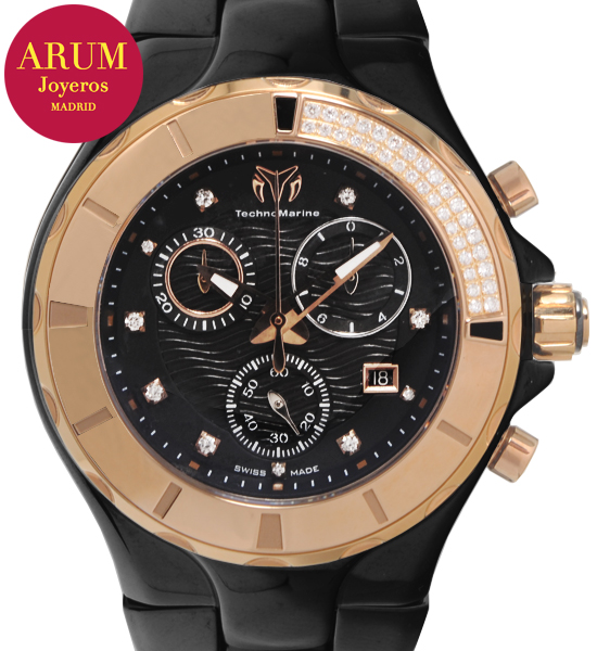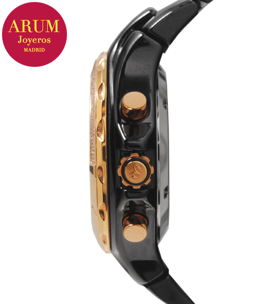 Other specifications :chronograph, date at four, small seconds at six, diamonds in the bezel.