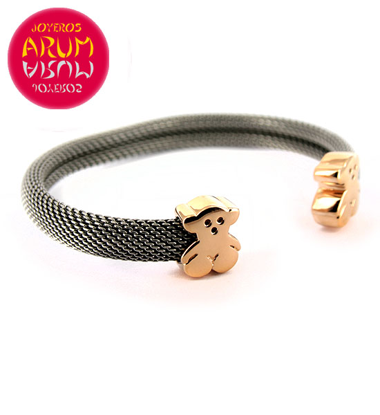 Description: Tous bracelet in steel with teddybears in yellow gold.