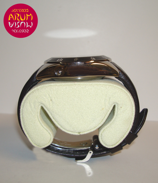 Description :steel, black dial with numerical scale, smooth bezel, sapphire crystal, automatic movement, chronograph, three indicators on the dial, seconds, minutes and hours, date between four and five, luminescent handles, screw crown and two buttons, waterproof 150 meters, diameter 41 mm, black leather strap, folding clasp steel, year 2010.