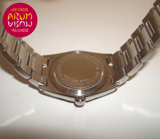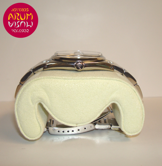 Description :steel, silver dial, smooth bezel, sapphire crystal, quartz movement, center seconds, luminescent handles with indicators, date at three, magnifier date, screw crown, diameter 34 mm, steel bracelet, folding clasp.