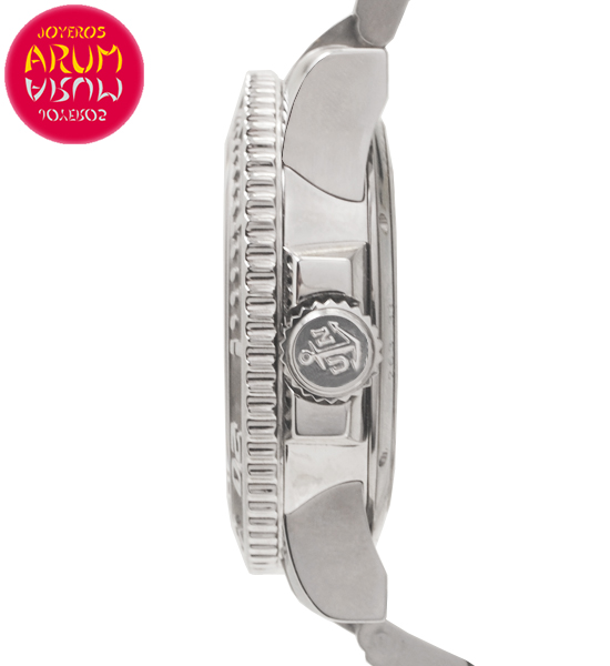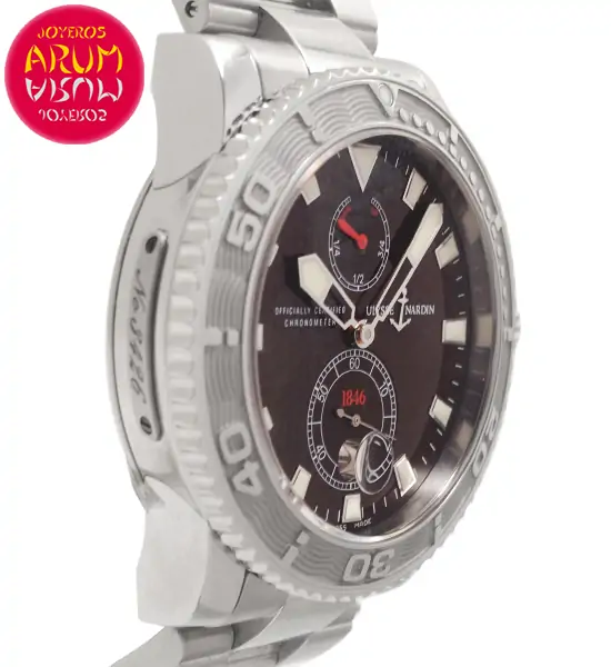 Other specifications :calibre UN-26, power reserve 48 hours, power reserve indicator, date at six, luminous marks, screw crown.