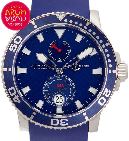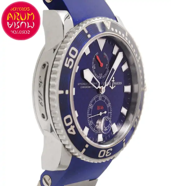 Other specifications :limited edition 500 pieces (149/500), calibre UN-26, power reserve indicator at twelve, date and small seconds at six, luminous marks, screw crown, transparent caseback. Year 2010.