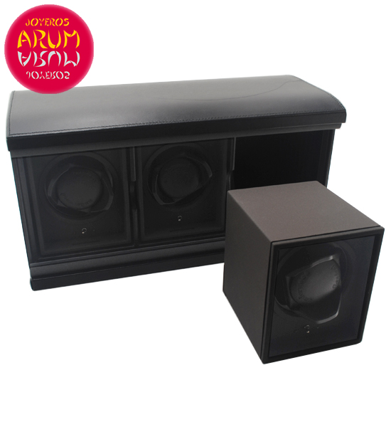 Underwood-London. Box with individual rotor for 3 watches. Keeps your automatic watches. Protects the watches in a luxury box. Extends the life of the watch and avoid breakdowns. Avoid damage by not having to manipulate the watch. Dimensions: 32 cm by 16,5 cm by 15.5 cm.