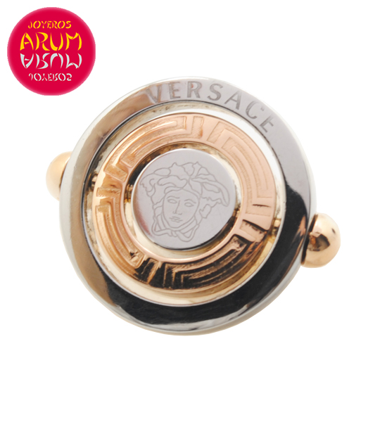 Description: Versace ring made in 18K rose gold and steel, with rotating parts, decorated with mother of pearl and Versace logo.