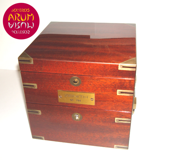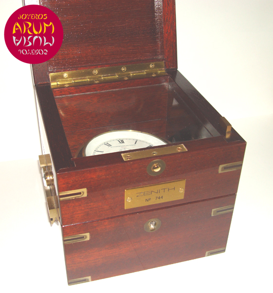 Description :Zenith watch chronometre with balancing system, made of bronze, wood box.