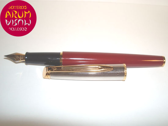 Product: Waterman Fountain PenDescription: Burdeaux body, cap in metal, gilt clip and ring. Size: 135 mmWith Waterman box.