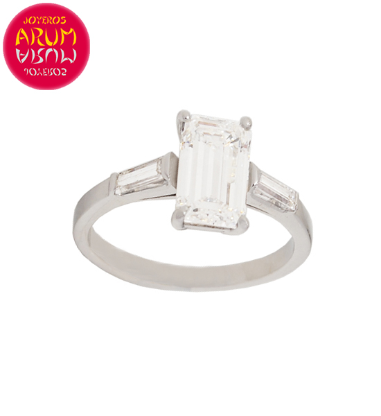 Description: White Gold 18K Ring with Baguette 1.55 cts. (J-VVS1) and two Baguettes 0.30 ct (H-VS1).