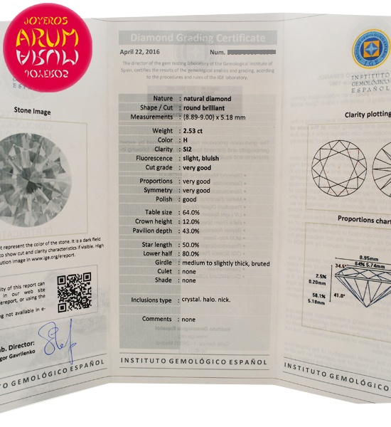 Certificated by Gemological Spanish Institute.