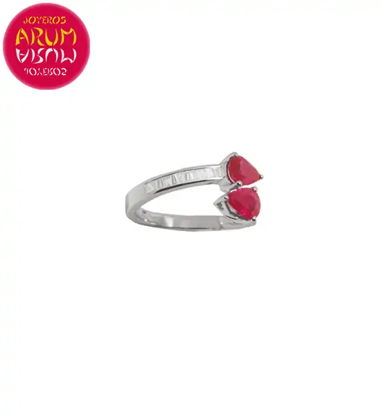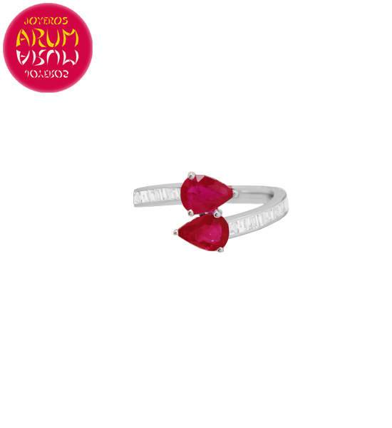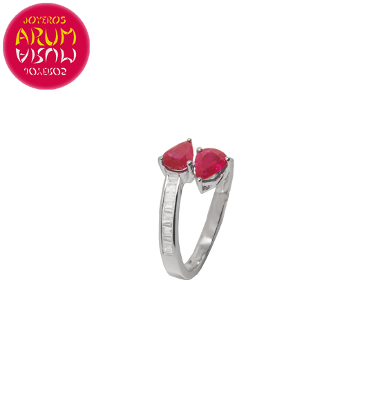 Description: White gold 18K ring (3.90 grs.) with diamonds 0,58 cts and two rubys 1.90 cts.