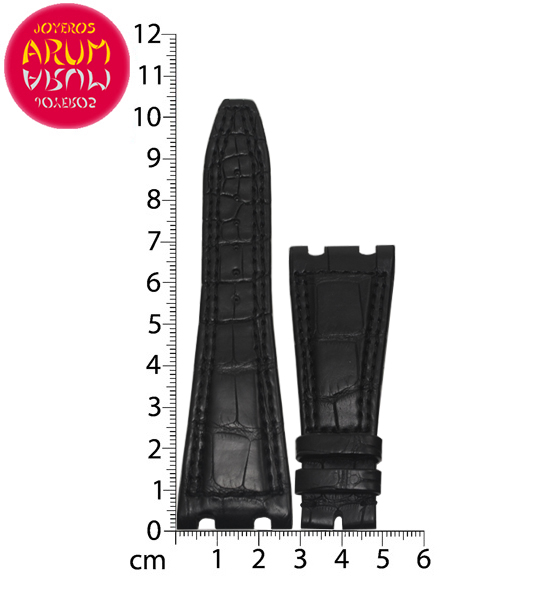 Brand :Audemars PiguetARUM Reference: RAC1601Material :Crocodile LeatherColor :blackLenght (mms) :105 – 70Width (mm) :28Deployant/buckle measure: (mm) :18
