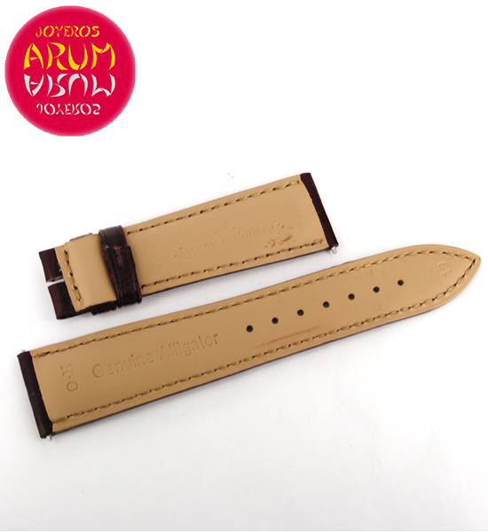 Brand :Jaeger-LeCoultreARUM Reference: RAC82Material :Crocodile LeatherColor :brownLenght (mms) :105 – 65Width (mm) :19Deployant/buckle measure: (mm) :16