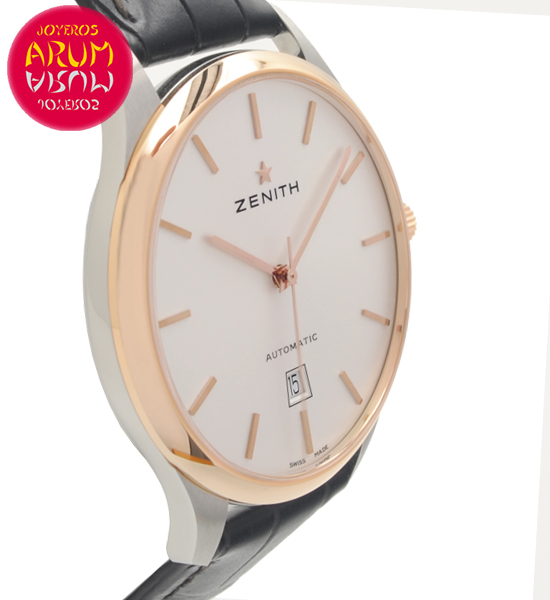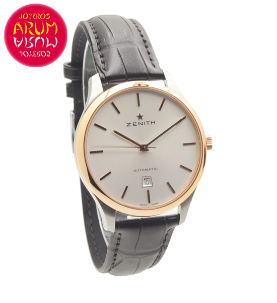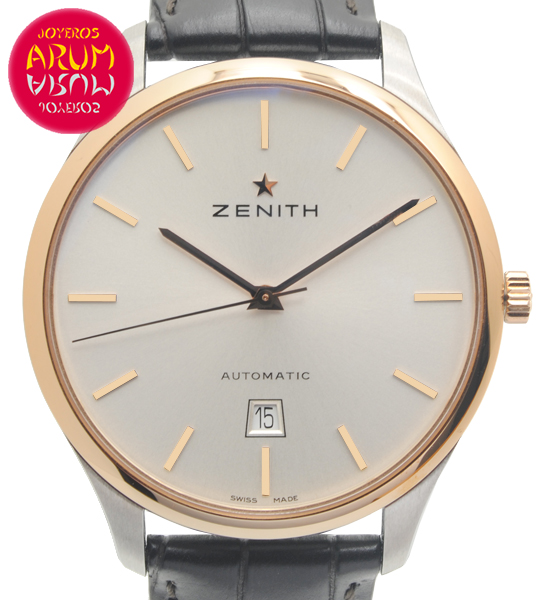 Other specifications :calibre Zenith 3001, power reserve 42 hours, 18K rose gold and steel, date at six, central seconds.