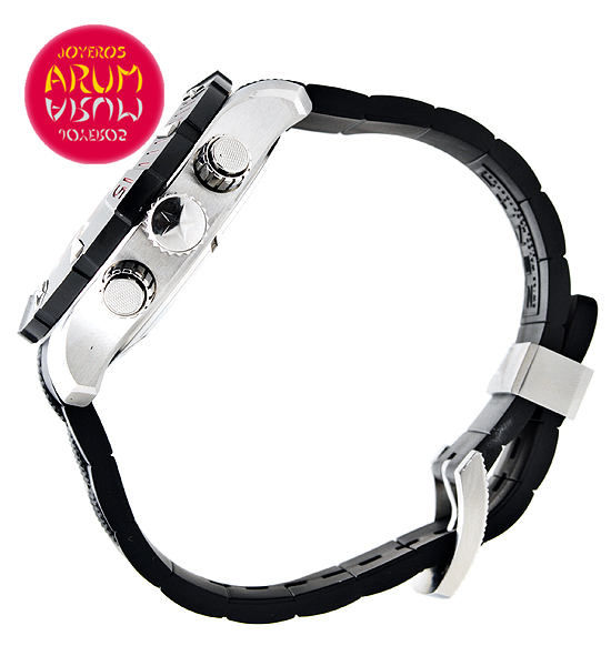 Other specifications :rotating bezel, chronograph, date between four and five, small seconds at nine, luminiscence handles, screw crown, transparent caseback, year 2011.