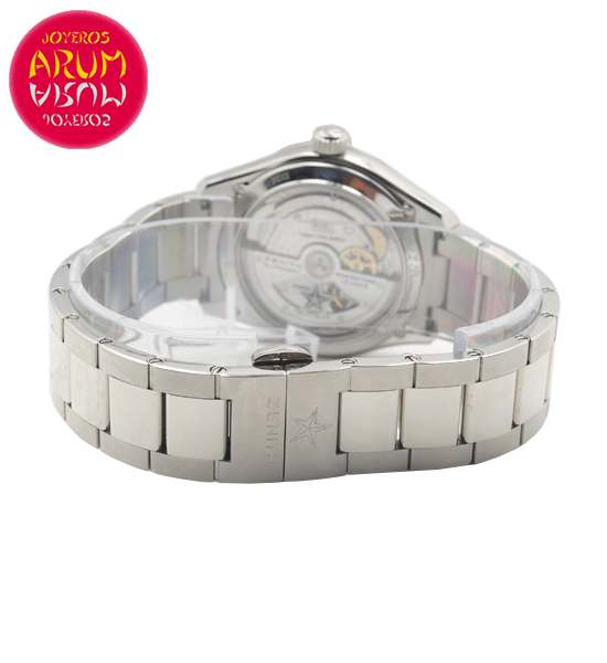 Other specifications :calibre Zenith 4650B, power reserve 50 hours, central seconds, date at three, screw crown, luminiscence marks, transparent caseback.