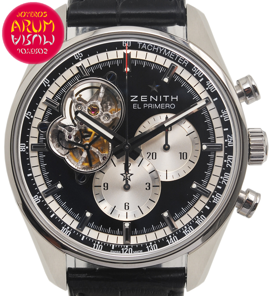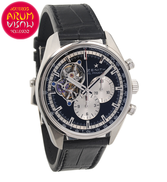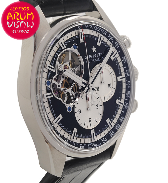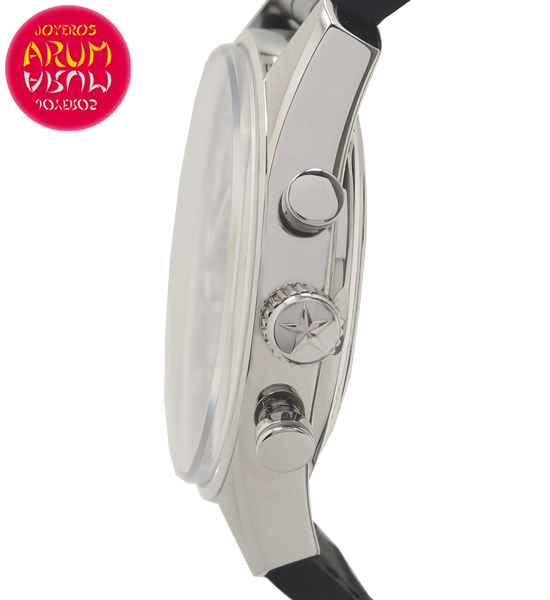 Other specifications :chronograph, small seconds at nine, tachymetre, open window, minute and hour counter, luminous marks, transparent caseback.