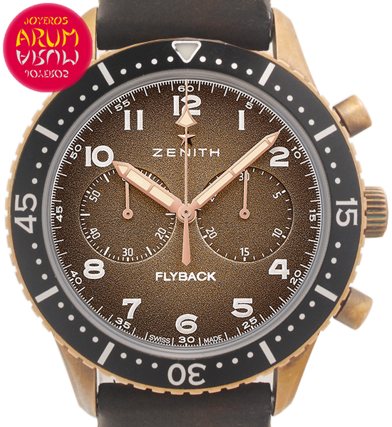 Other specifications :calibre El Primero 405B, power reserve 50 hours, chronograph flyback, small seconds at nine, luminous marks, rotating bezel. Year 2018.