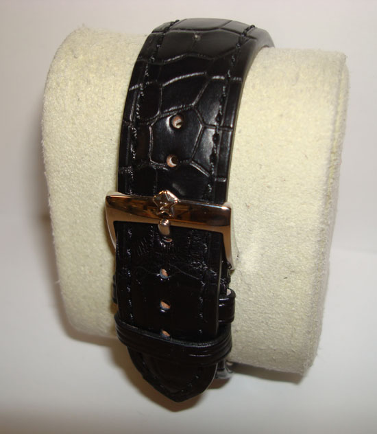 Description :limited to 500 pieces, steel, plastic glass, automatic movement, chronograph, three indicators on the dial, seconds, minutes, hours, date, handles and luminescent dial, screw crown and two buttons, diameter 40 mm, transparent caseback, black leather strap, steel buckle closure.