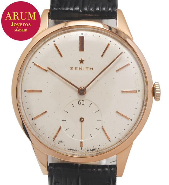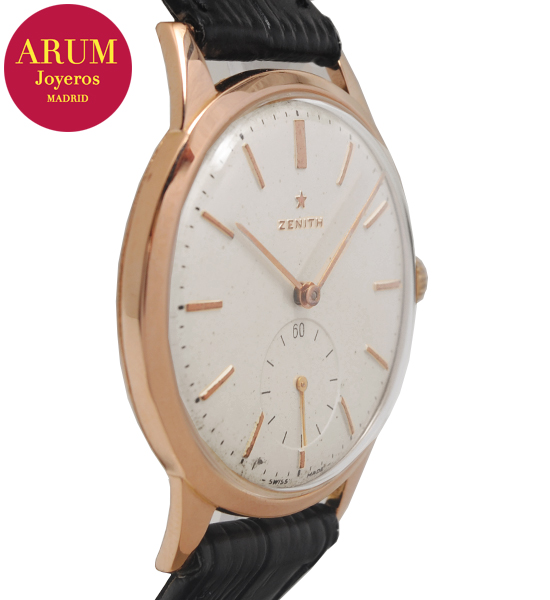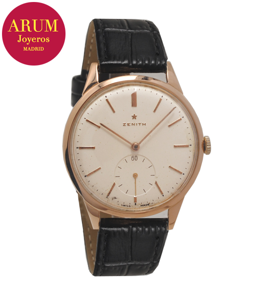 品牌 :Zenith型号 :Vintage ARUM Reference: 7123直径 :36 mm运动 :机械表表壳材料 :玫瑰金表带材料 :皮水晶 :塑料表盘 :灰色, 没有数字表扣 :搭扣 状况 :很好 质保 :1年