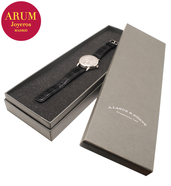 Otras especificaciones :calibre L921.4, reserva de marcha de 46 horas, 46 rubís, función de puesta a cero Sax-0-Mat, subesfera para el pequeño segundero con aguja de acero azulado, doble abertura de gran tamaño para la fecha, agujas y puntos luminiscentes, tapa trasera transparente, hebilla de platino.