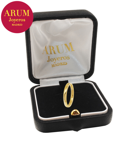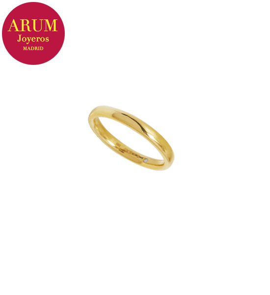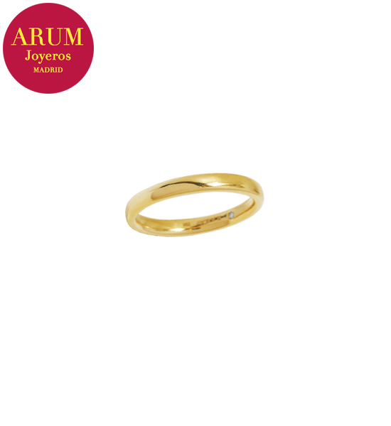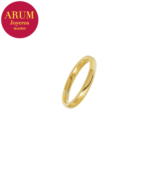 Descripción: Alianza de boda de media caña de la firma Rabat, realizada en oro amarillo de 18K con un diamante interior talla brillante de 0,01 ct (Color GH – Pureza VS). Peso 2,70 grs