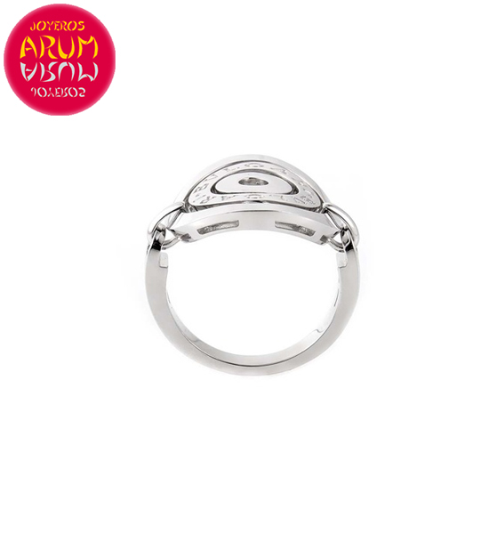 Descripción: Anillo de la prestigiosa firma Bulgari perteneciente a la colección Astrale, realizado en oro blanco de 18K, con forma de escudo curvo.