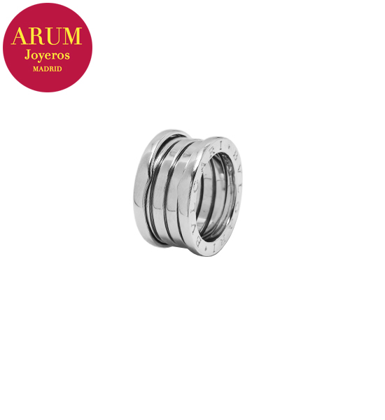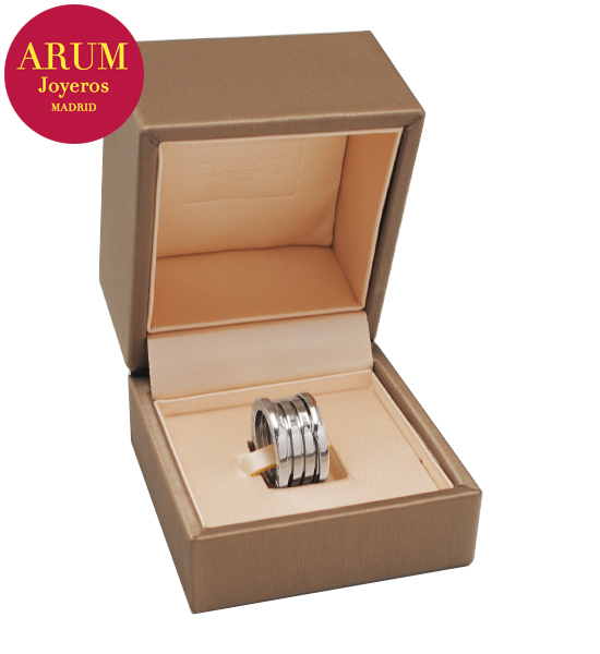 Descripción: Anillo de la prestigiosa firma Bulgari perteneciente a la colección B.Zero1, realizado en oro blanco de 18K con cuatro bandas centrales móviles. Peso 10,6 grs