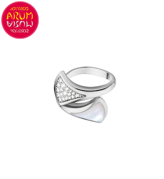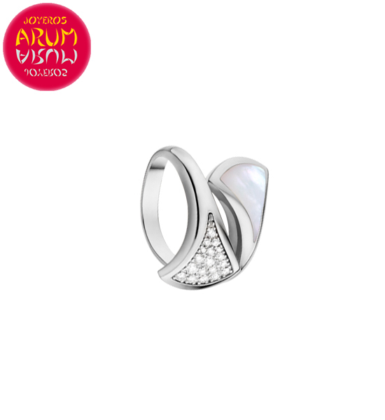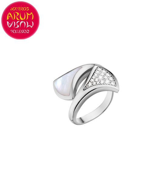 Descripción: Anillo tipo contraire de la prestigiosa firma Bulgari perteneciente a la colección Divas Dream, realizado en oro blanco de 18K con madreperla y pavé de diamantes (0.25 qts.)