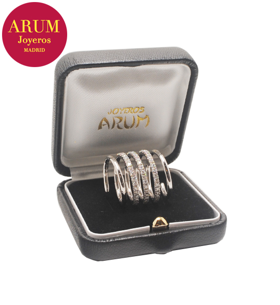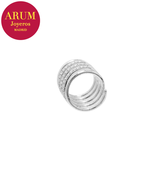 Descripción: Anillo flexible tipo muelle, realizado en oro blanco de 18K (peso 10,6 grs.) con diamantes talla brillante de 0,98 qts. (Color G, Pureza VS)