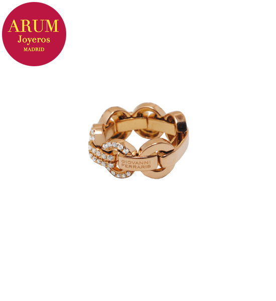 Descripción: Anillo articulado de la prestigiosa firma de joyería Giovanni Ferraris, realizado en oro rosa de 18K con diamantes talla brillante. Peso 13,24 grs.