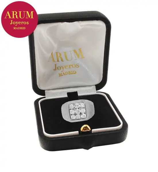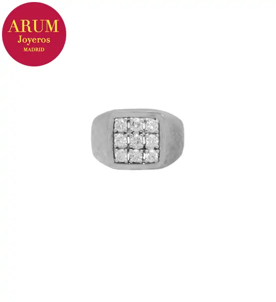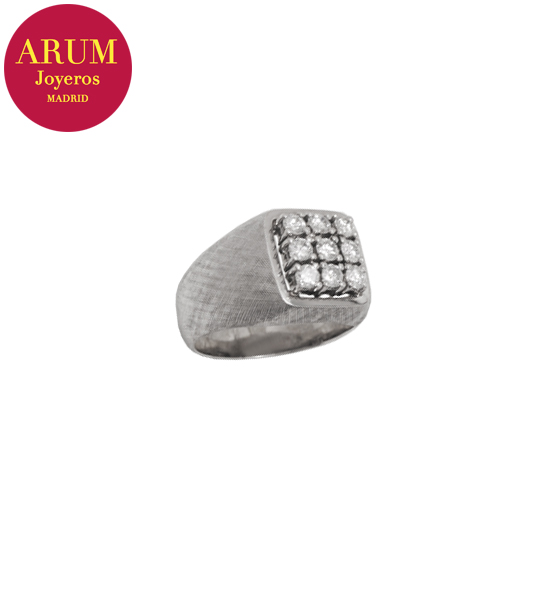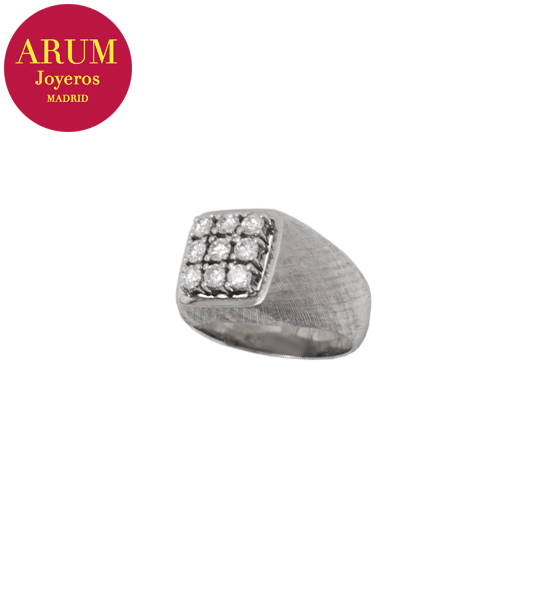 Descripción: Anillo realizado en oro blanco de 18K con nueve diamantes talla brillante de 0,05 qts. Peso 9,59 grs.