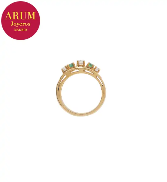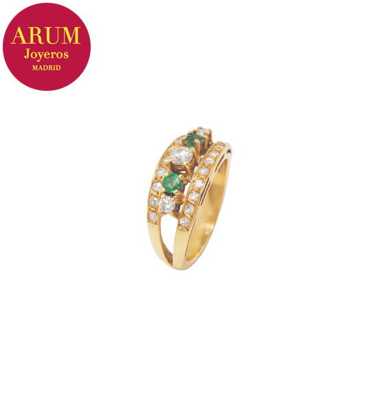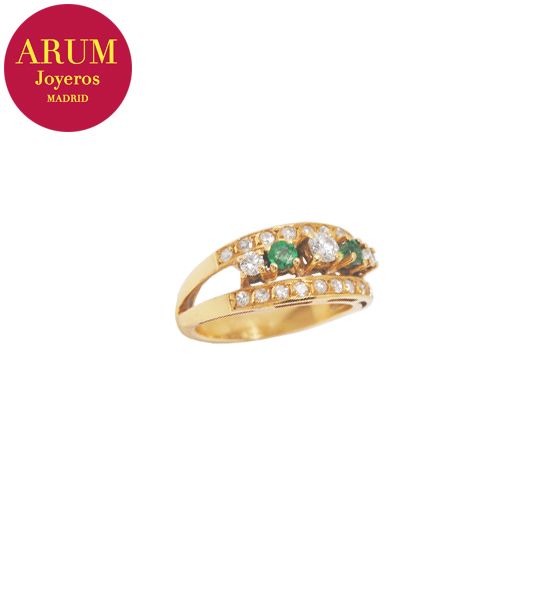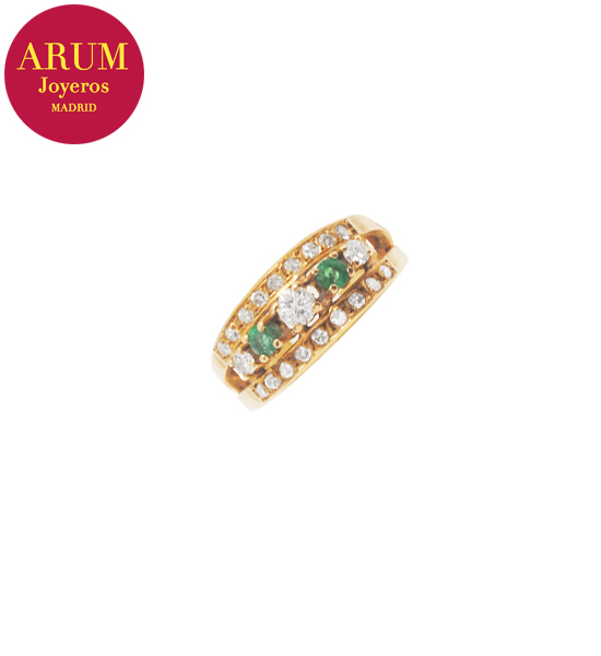 Descripción: Anillo realizado en oro amarillo de 18K con brillantes y esmeraldas. Peso 4,93 grs.
