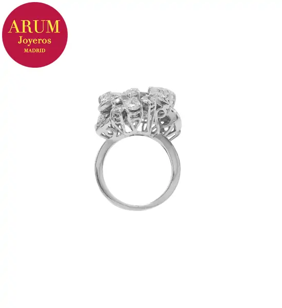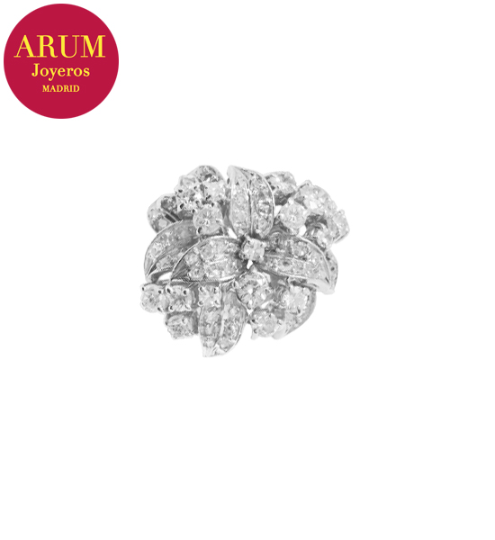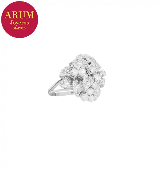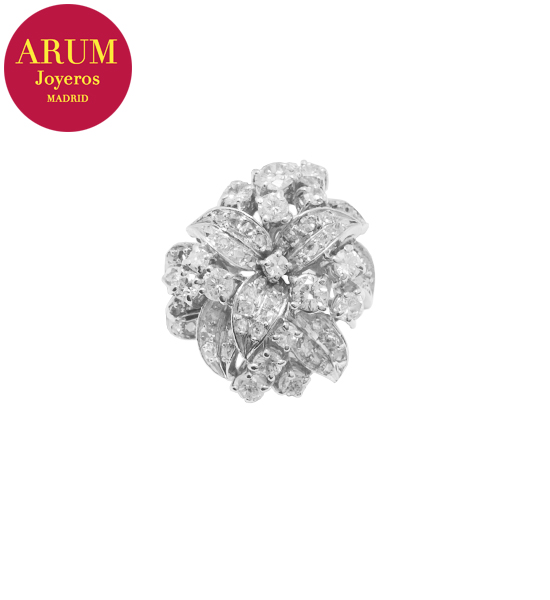 Descripción: Anillo de motivos florales realizado en oro blanco de 18K con diamantes talla brillante. Peso 10,81 grs.