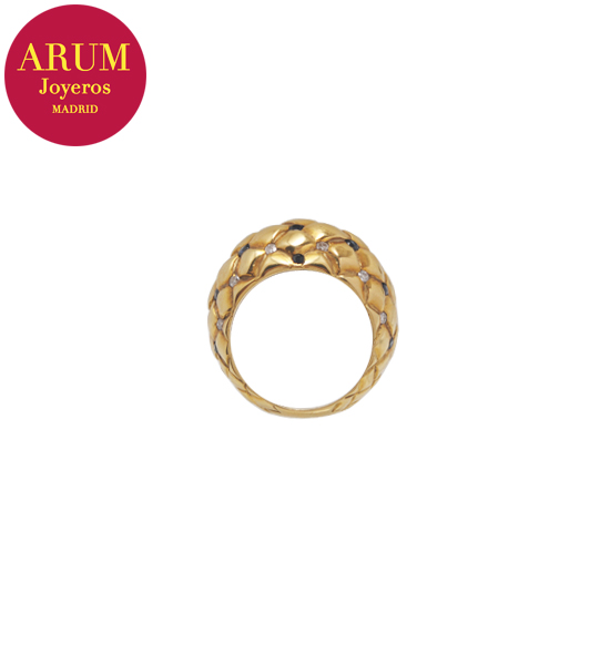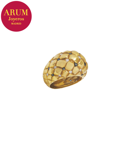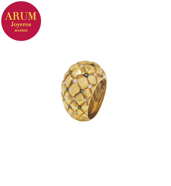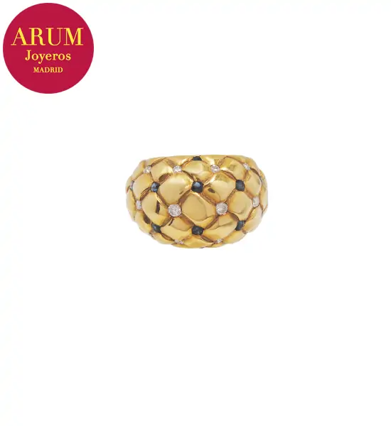 Descripción: Anillo realizado en oro amarillo de 18K con brillantes y zafiros. Peso 8,92 grs.