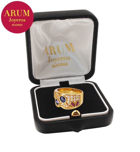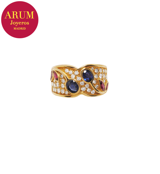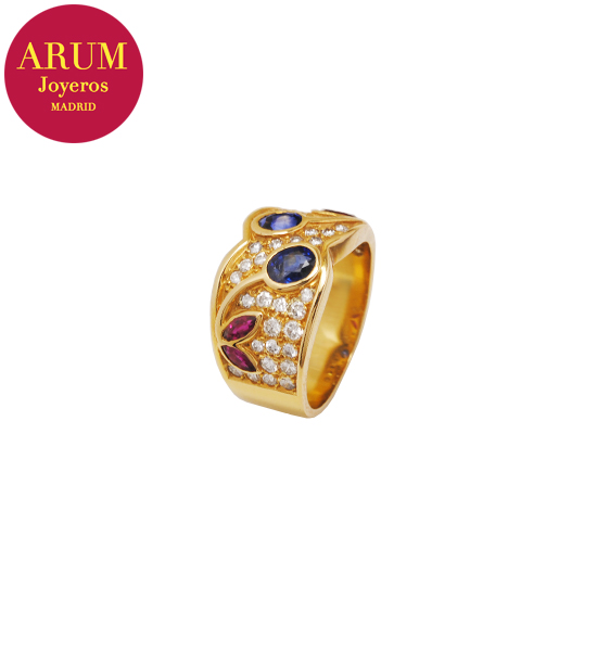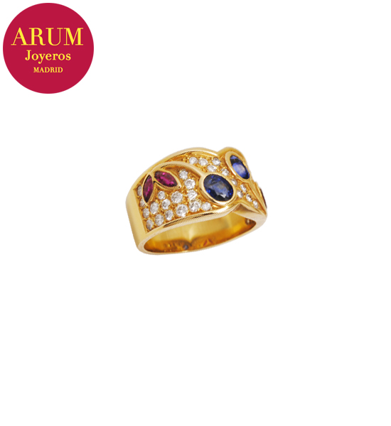 Anillo Oro con Brillantes Zafiros Rubis