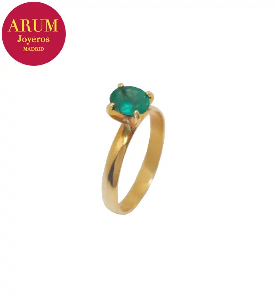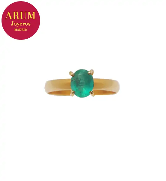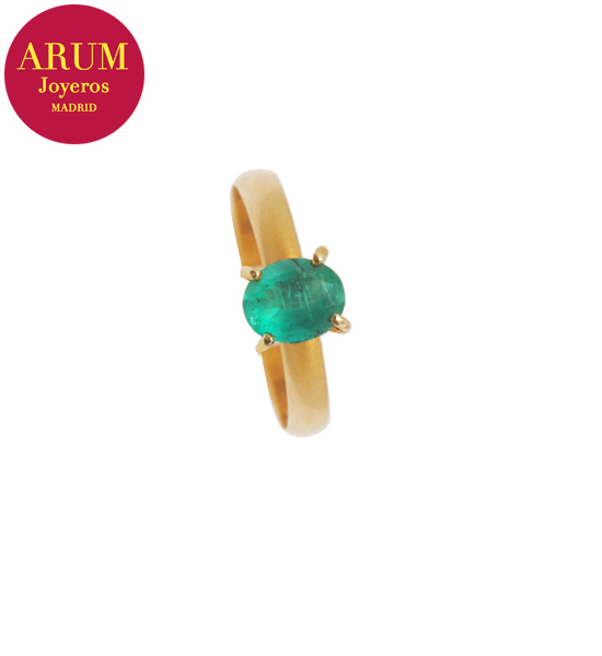 Descripción: Anillo realizado en oro amarillo de 18K con una esmeralda central de 0,60 qts. Peso 2,19 grs.