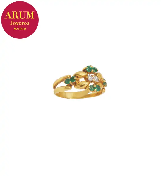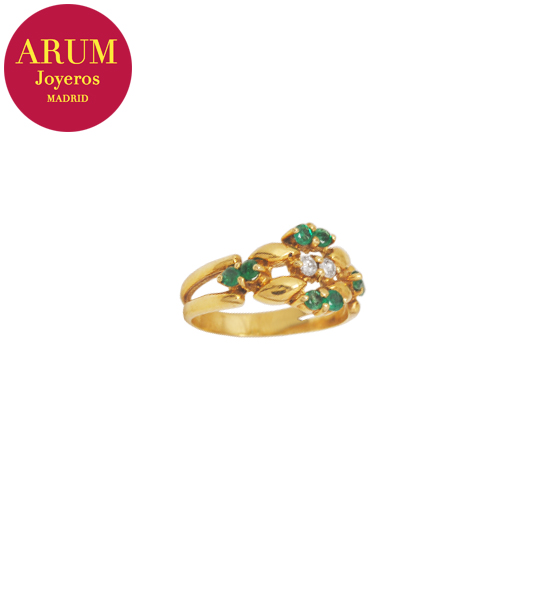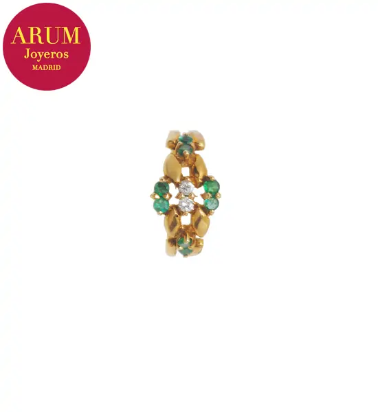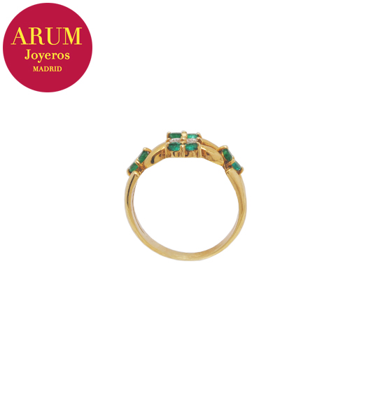 Descripción: Anillo realizado en oro amarillo de 18K con brillantes y esmeraldas. Peso 4,72 grs.