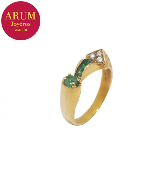 Anillo Oro Esmeraldas y Brillantes