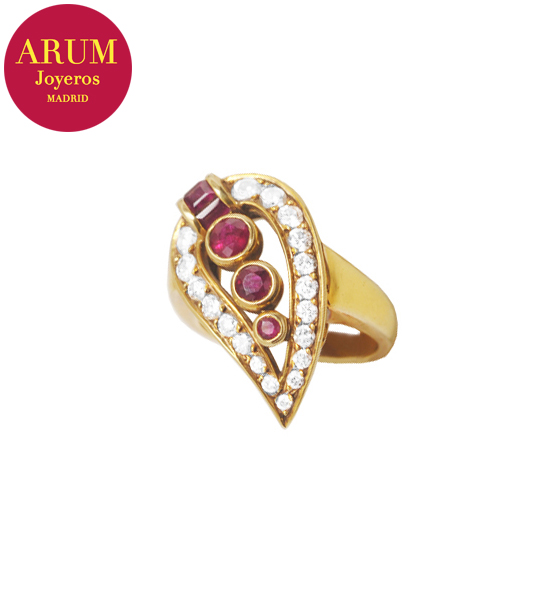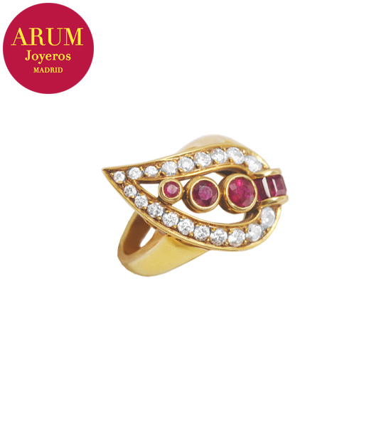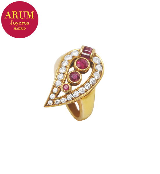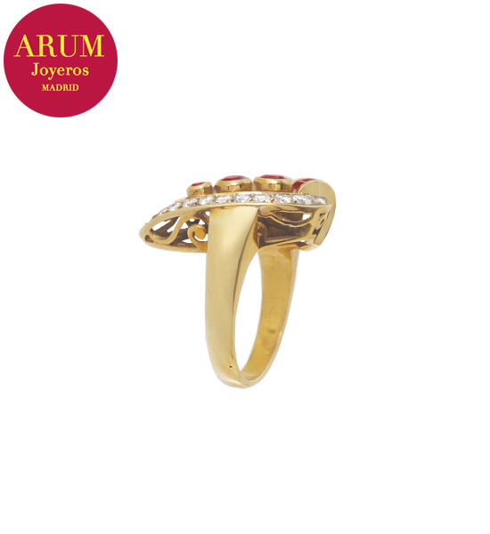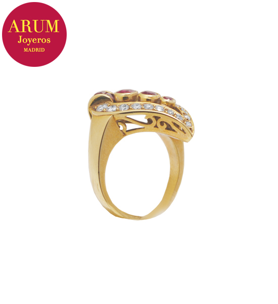 Anillo Oro Rubís y Brillantes