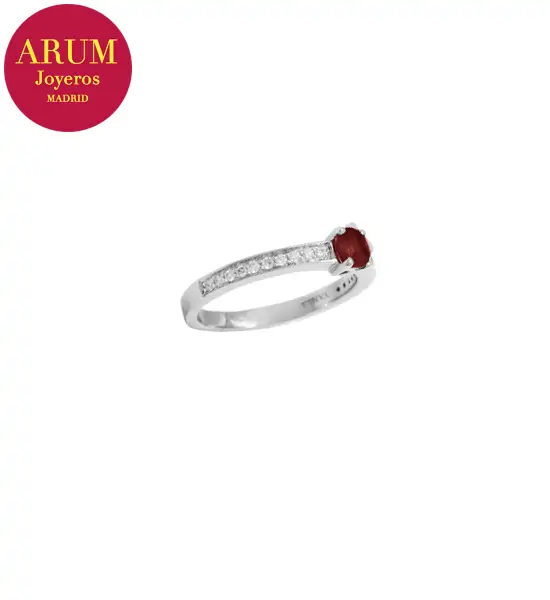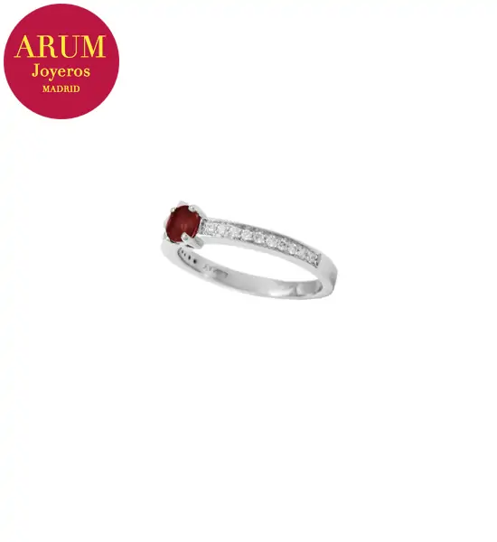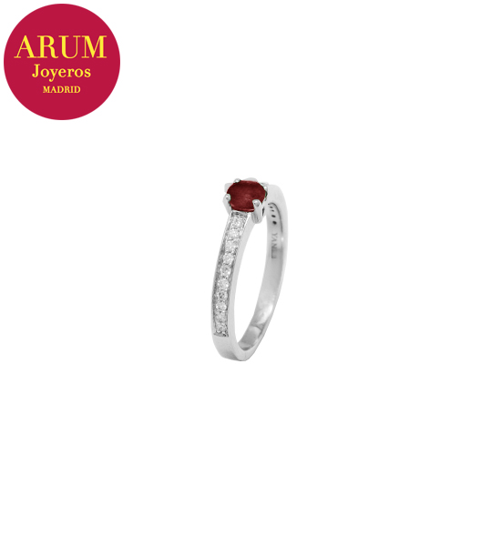 Descripción: Anillo realizado en oro blanco de 18K con un rubí y brillantes a los lados. Peso 3.10 grs.