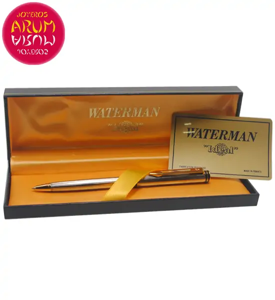 Descripción: Bolígrafo de la prestigiosa firma de escritura Waterman, realizada en plaqué plata con detalles dorados. El bolígrafo mide 14,2 cm.