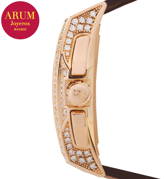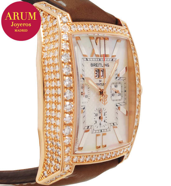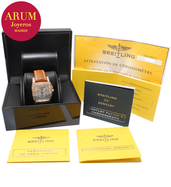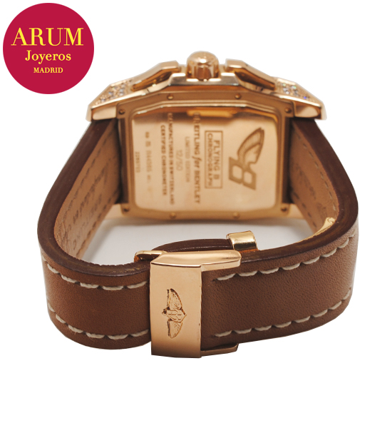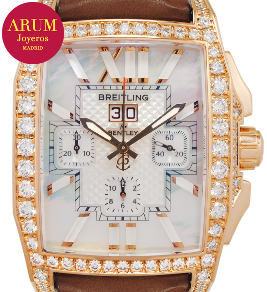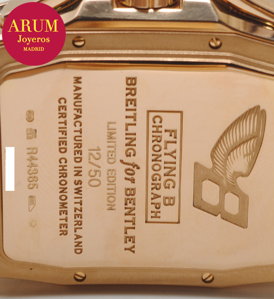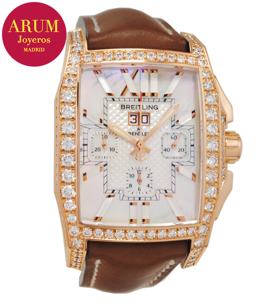 Otras especificaciones :fabricado en colaboración con la marca automovilística Bentley, serie limitada y númerada a 50 piezas(12/50), oro rosa de 18K con pavé de brillantes de 6.80 qts (Color TW – Pureza VVS), cronógrafo, fecha a las doce, segundero pequeño a las tres, contadores de horas y de minutos, marcas luminiscentes, deployant en oro rosa de 18K. Año 2008.