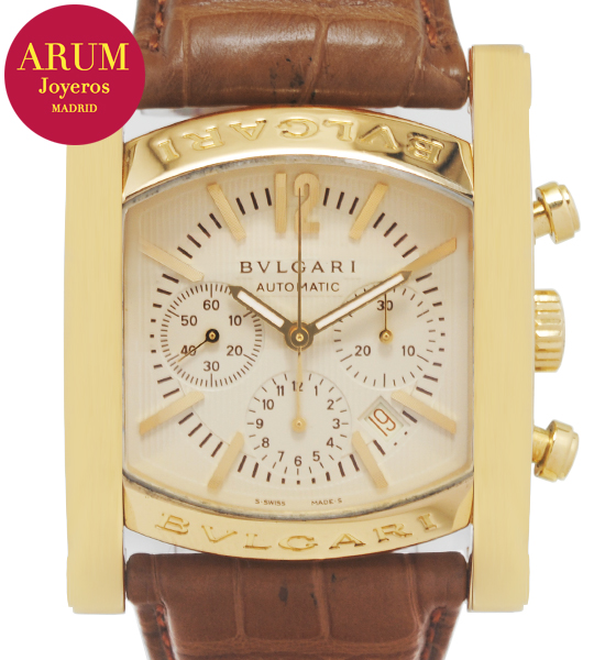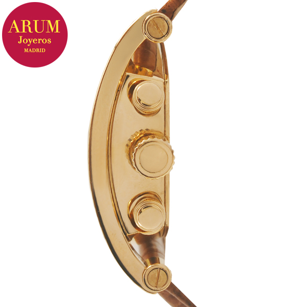Otras especificaciones :cronógrafo, fecha entre las cuatro y las cinco, segundero pequeño a las nueve, caja y deployant en oro de 18K.