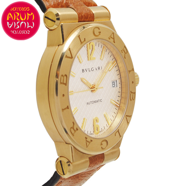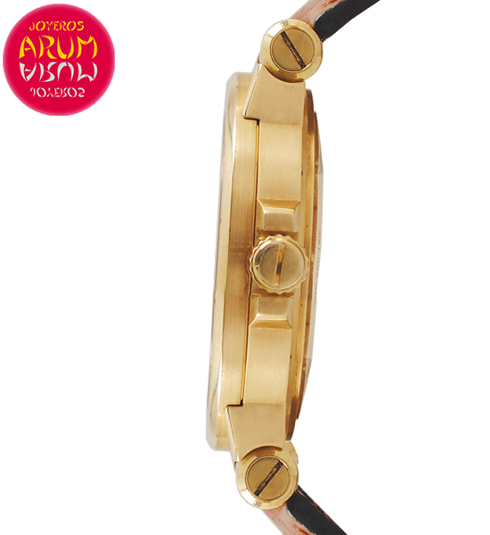 Otras especificaciones :esfera guilloseada, fecha a las tres, segundero central, marcas luminiscentes, corona a rosca, hebilla de oro de 18K.