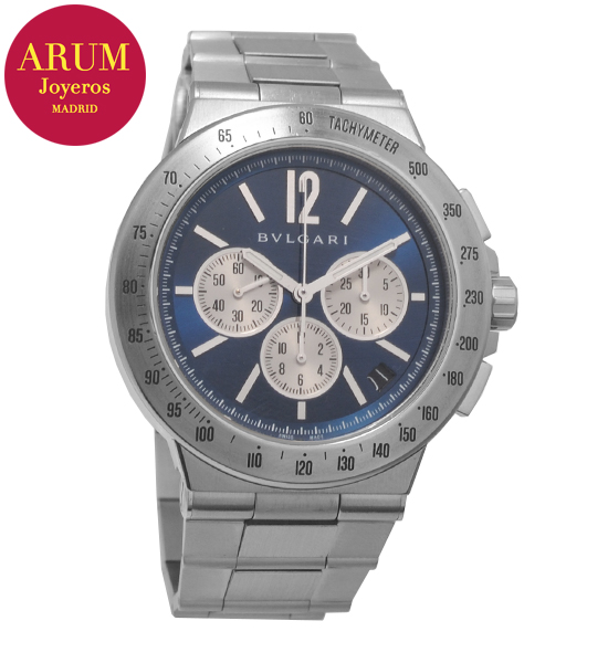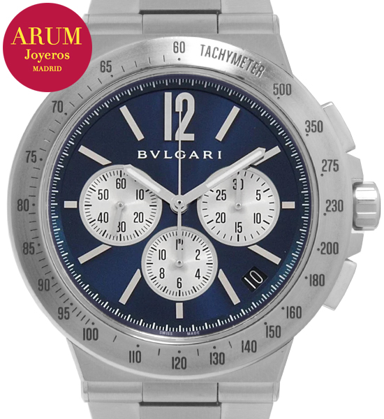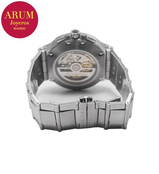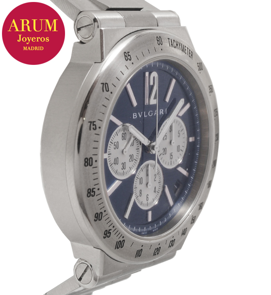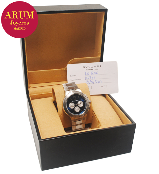 Otras especificaciones :calibre BVL328 (Zenith El Primero), reserva de marcha de 50 horas, cronógrafo, taquímetro, fecha entre las cuatro y las cinco, segundero pequeño a las nueve, marcas luminiscentes, tapa trasera transparente. Año 2017.